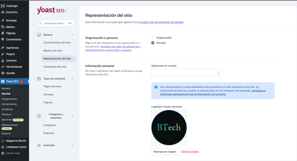 Configuración de Yoast Seo plugin