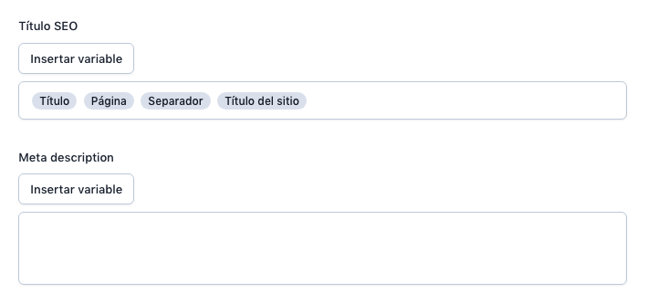 Aquí configuramos las distintas herramientas de webmaster, esto añade una etiqueta meta en nuestra página de inicio de las diferentes plataformas